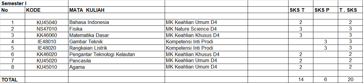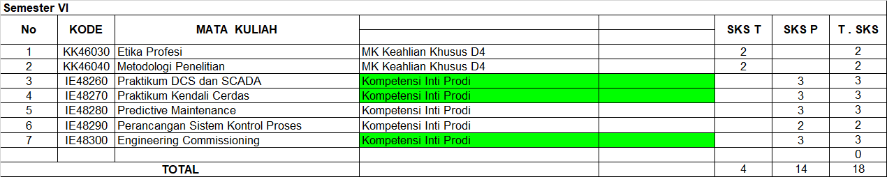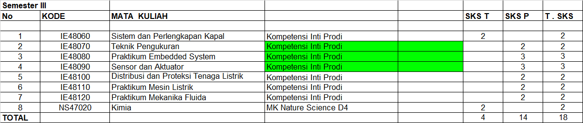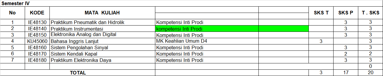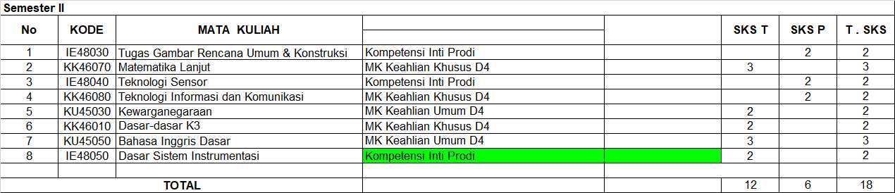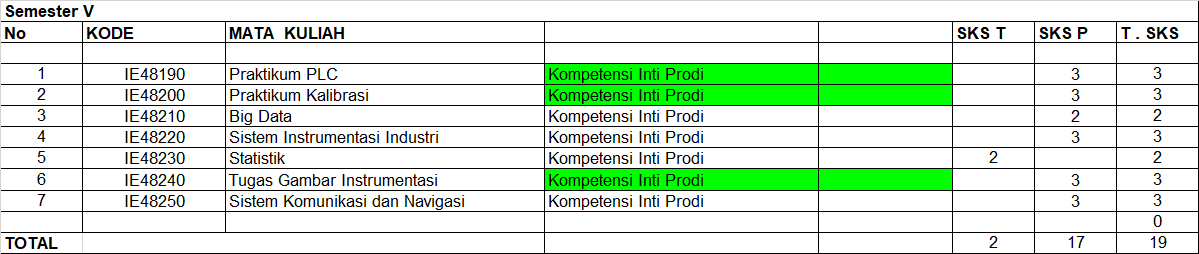Berikut merupakan rincian Kurikulum OBE Teknologi Rekayasa Instrumentasi Politeknik Perkapalan Negeri Surabaya: